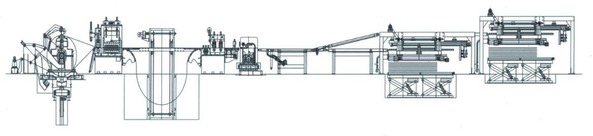 該生產(chǎn)線是將較薄金屬卷板整平、剪切成塊狀板材的專用設(shè)備,實現(xiàn)工件連續(xù)運行不停的工況下,完成高速精確定長剪切,工件平整度及板型好,特別適合于剪切短板工件的批量生產(chǎn)。