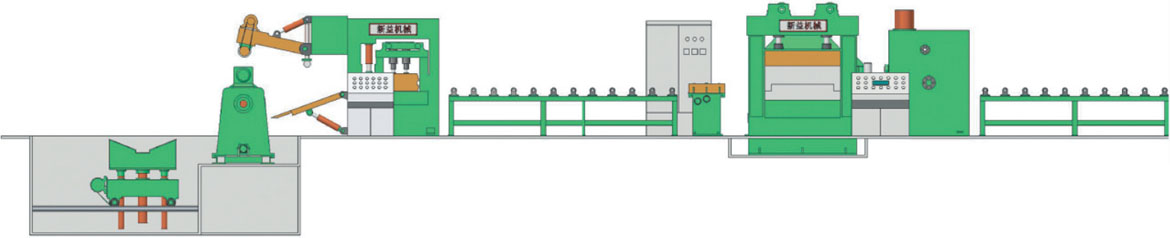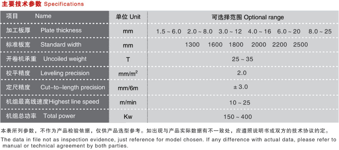 該生產線為中厚板開卷校平生產線的升級機型。為了適應鋼廠不斷推出的厚度更大、板幅更寬的鋼卷開平需要,本公司特別設計、制造出該系列產品。由上料小車、開卷機、引頭裝置、夾送及粗校、過渡臺、對中裝置、主校平機、測長裝置、尾料夾送、剪板機、輸送出料、落料整料裝置、電控系統與液壓氣動系統等組成。